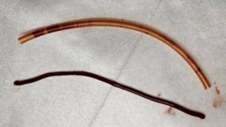 护士从我的血管中抽出了一根“虾线”!这是我的血栓吗?最近,社交媒体上有许多网友晒出“血管中抽出血栓”的图片: