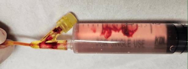 充满鸡血的留置针