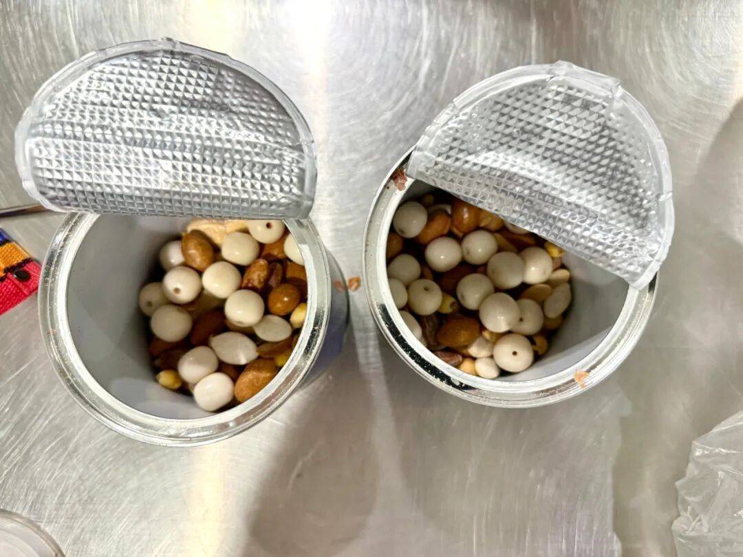 近日,杭州海关所属杭州萧山机场海关关员在对进境航班进行监管时,发现一名旅客的行李机检图像显示异常,现场关员随即对其进行拦截并作进一步查验。经开箱检查,关员在其行李箱内的罐头中发现与坚果混装在一起的疑似象牙珠子26件。