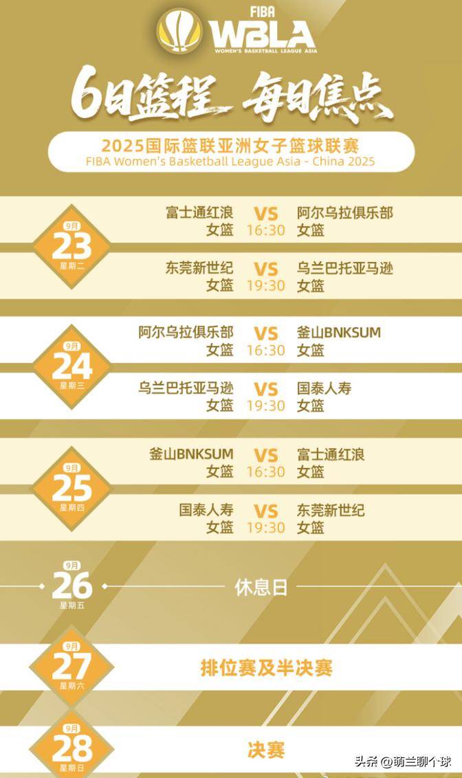 赛程方面,广东女篮将在揭幕战迎来首场考验。9月23日晚19:30,她们将迎战来自蒙古的乌兰巴托亚马逊女篮。经过一天休整后,9月25日同一时间,球队将与中国台北的国泰人寿女篮展开较量。