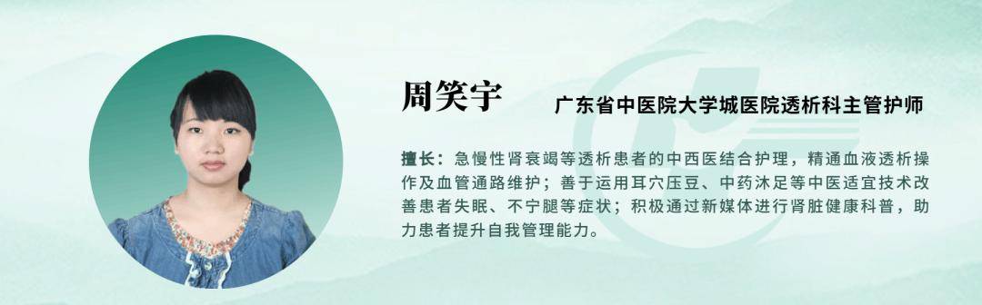 作为广东省中医院的特色科室,我们巧妙融合现代医学与中医智慧。创新应用四子散外敷、频谱仪照射、红花酒湿敷内瘘等中医特色疗法,有效干预透析相关并发症(如便秘、内瘘成熟不良等),帮助您改善生活质量,这是您在这里能享受到的独特优势。