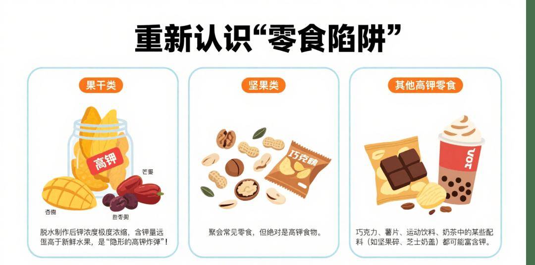 其他:巧克力、薯片、运动饮料、奶茶中的某些配料(如坚果碎、芝士奶盖)都可能富含钾。