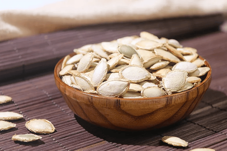 南瓜籽给身体带来的好处,含丰富的色氨酸,谷氨酸,锌,植物甾醇。