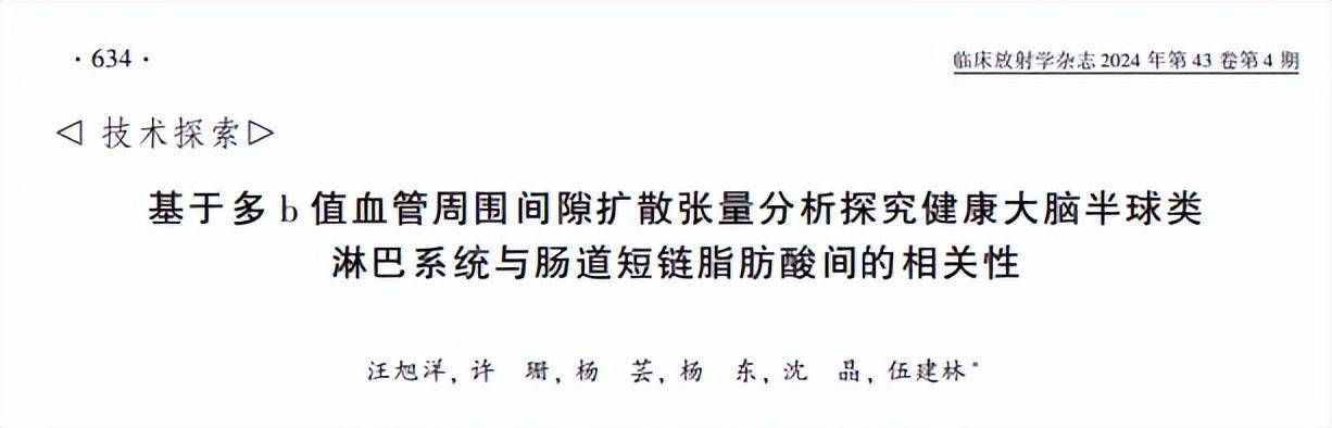 [1]汪旭洋,基于多 b 值血管周围间隙扩散张量分析探究健康大脑半球类 淋巴系统与肠道短链脂肪酸间的相关性,临床放射学杂志,2024-04-03