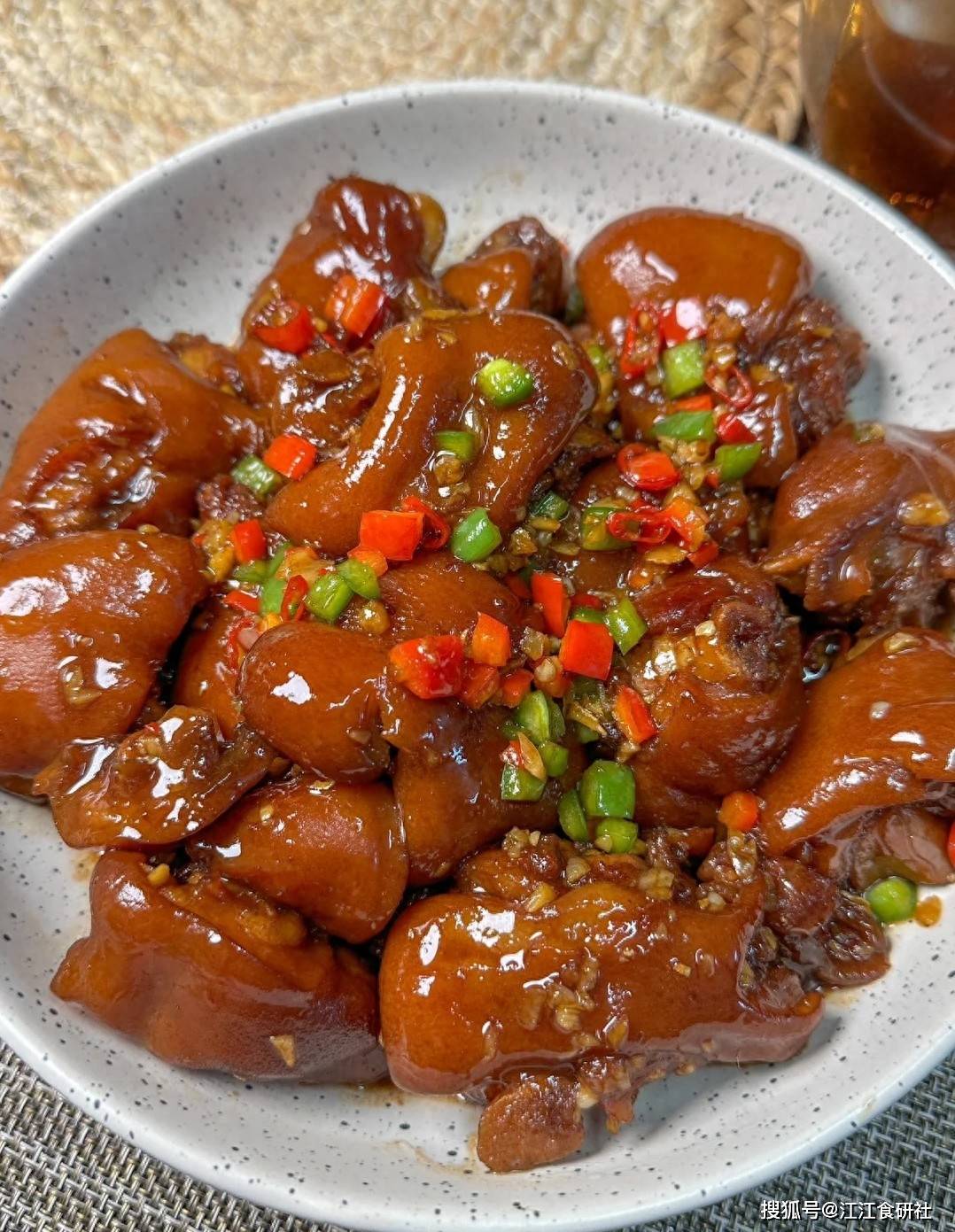 我的小唠叨: 炒糖色时一定要用小火,不然容易发苦。炖煮的水一定要一次性加够,中途尽量别加水了。炖得烂烂的猪蹄,用筷子一夹就断,满口的胶原蛋白,一点都不腻!