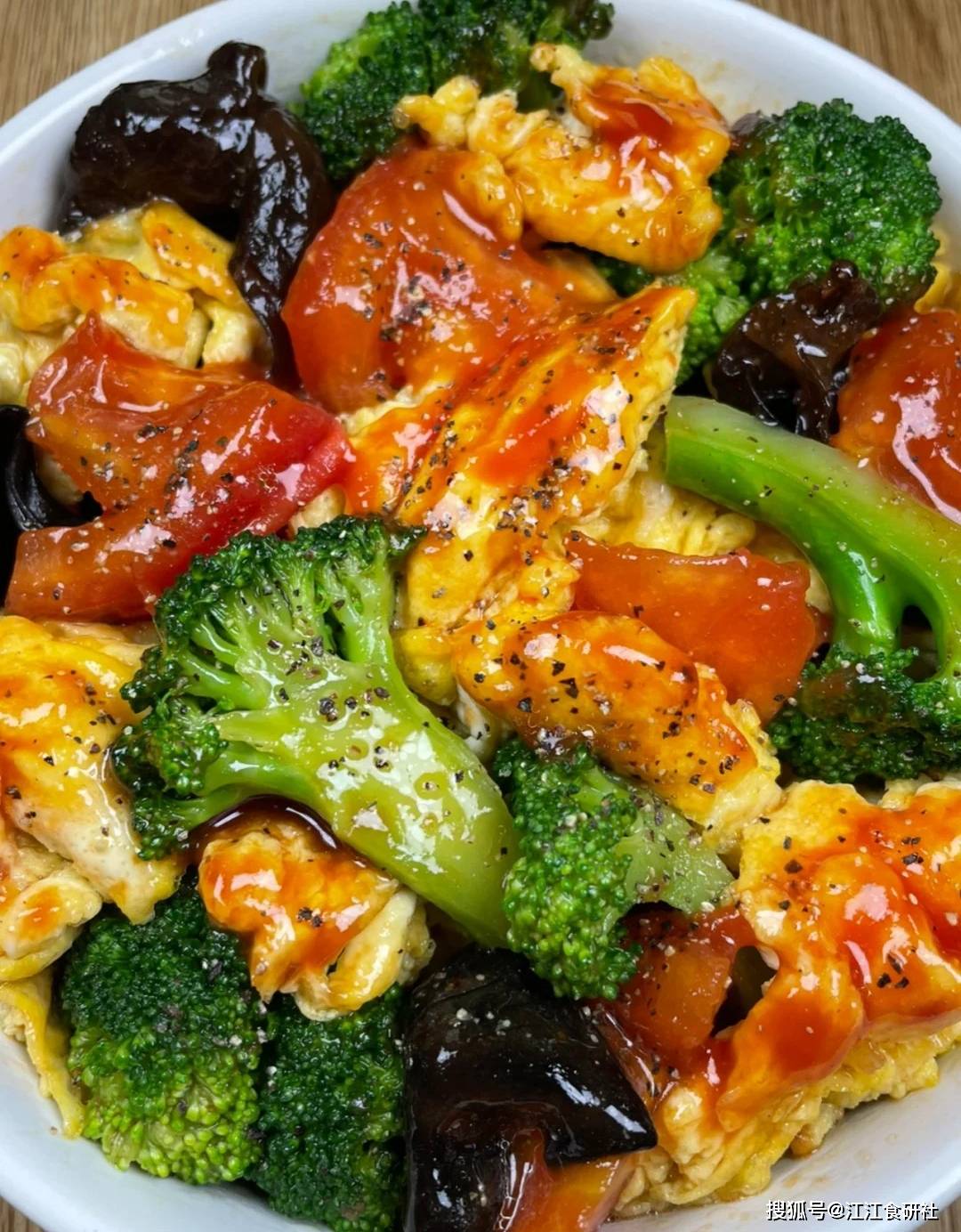清爽搭档:西兰花木耳番茄炒鸡蛋(色彩缤纷,清理肠道)