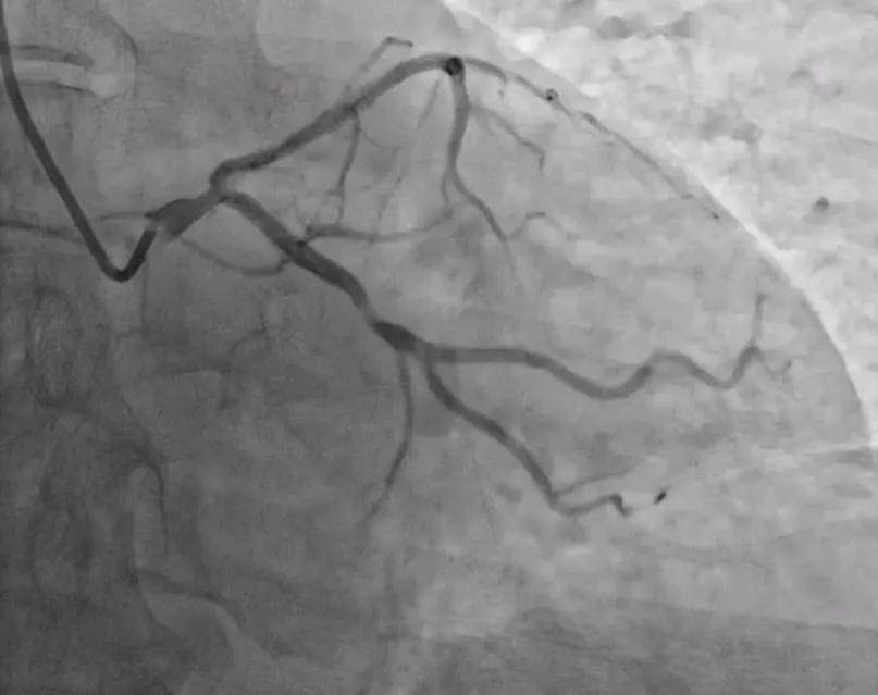 患者为67岁男性,主诉胸闷3月,冠脉CTA及造影均提示左回旋支(LCX)中段重度狭窄,且血管角度较大,传统手动操作难度较高。经全面评估,曾勇主任团队为其制定了个体化治疗方案,决定施行血管介入机器人辅助手术。
