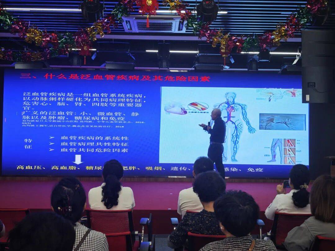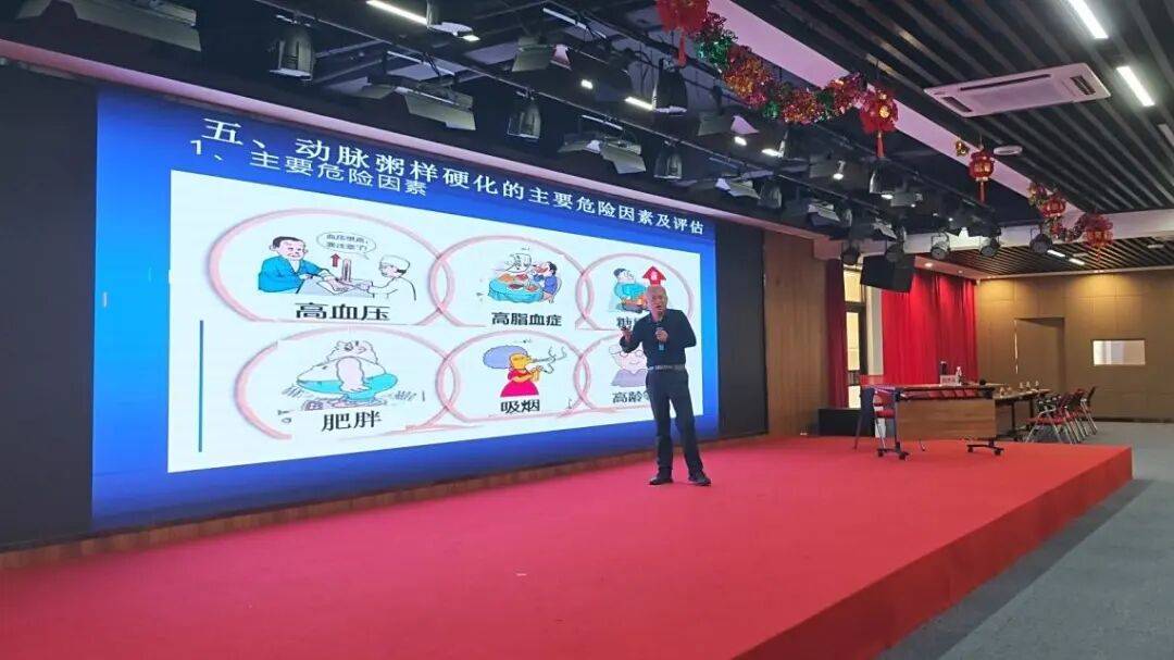 活动的重头戏是中国健康传播大使、大医一院特聘教授陶贵周带来的 《健康生活方式与动脉粥样硬化》 科普讲座。陶教授用通俗易懂的语言,将深奥的医学知识转化为生活常识。他详细解析了高血压、高血脂、糖尿病等心血管疾病的高危因素,并给出了日常饮食“少盐少油”、科学运动“持之以恒”、心理调节“心态平和”等一系列实用建议。
