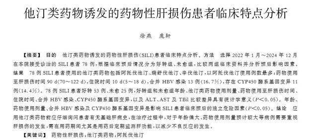 [1]徐燕,庞轩.他汀类药物诱发的药物性肝损伤患者临床特点分析[J].肝脏,2025,30(07):972-974+1004.
