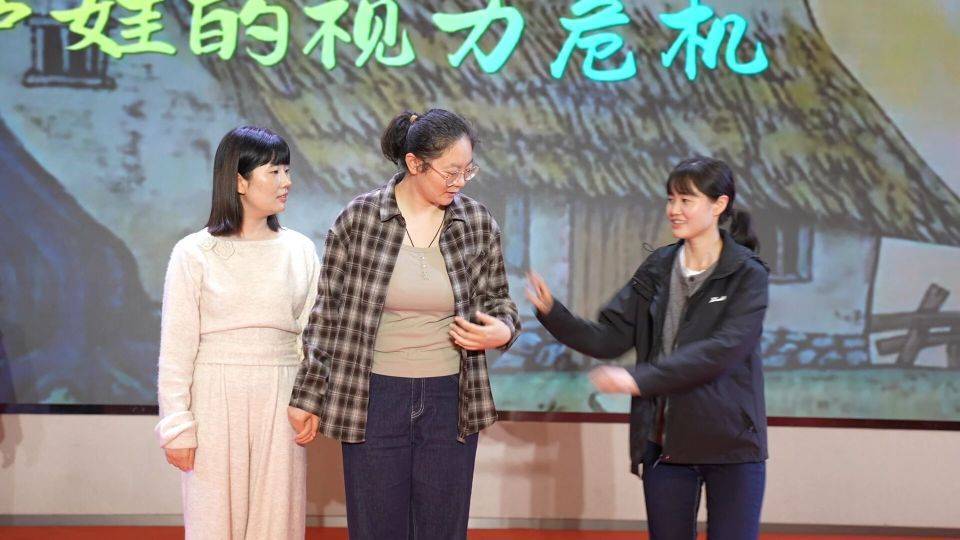 妇幼健康专场《哪吒护孕妈之双胎孕期健康管理攻略》的参演者化身“哪吒”,将双胎孕期管理的专业知识巧妙融入剧情。一旁的家属则针对动作幅度提出纠正建议。