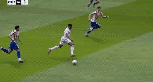 皇马在第25分钟由新援居莱尔助攻姆巴佩扳平比分。法国前锋在狭小角度完成精彩射门,将个人赛季进球数提升至8球。随后居莱尔接维尼修斯助攻再下一城,帮助皇马2-1反超。但马竞并未放弃,索尔洛特在半场结束前头球梅开二度,将比分扳平。
