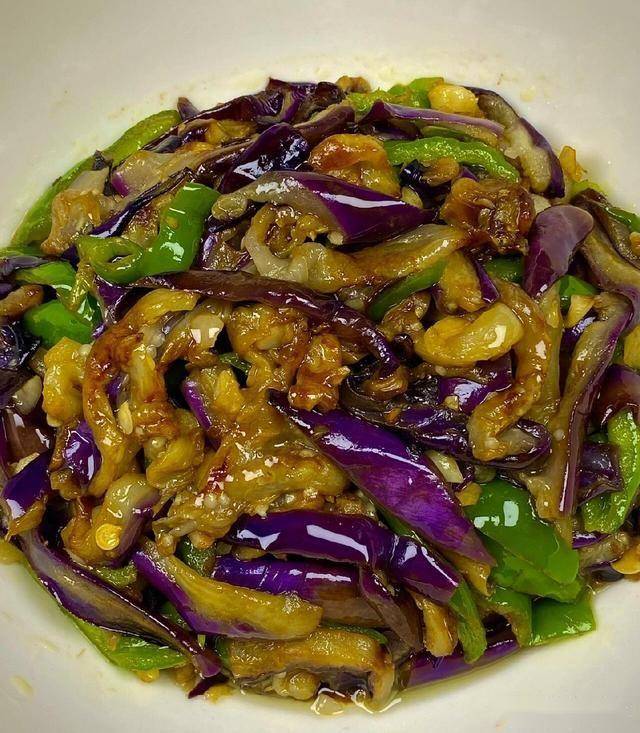 7. 出锅装盘:炒至茄子软烂,辣椒入味,最后将菜肴盛出装盘即可。
