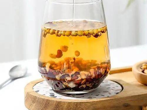做法:将所有材料放入养生壶或保温杯里,用沸水冲泡,焖20分钟左右即可饮用,可以反复冲泡至味淡。炒过的芡实健脾作用更强,茯苓同样是健脾宁心的祛湿好物,这个组合非常适合办公室人群。