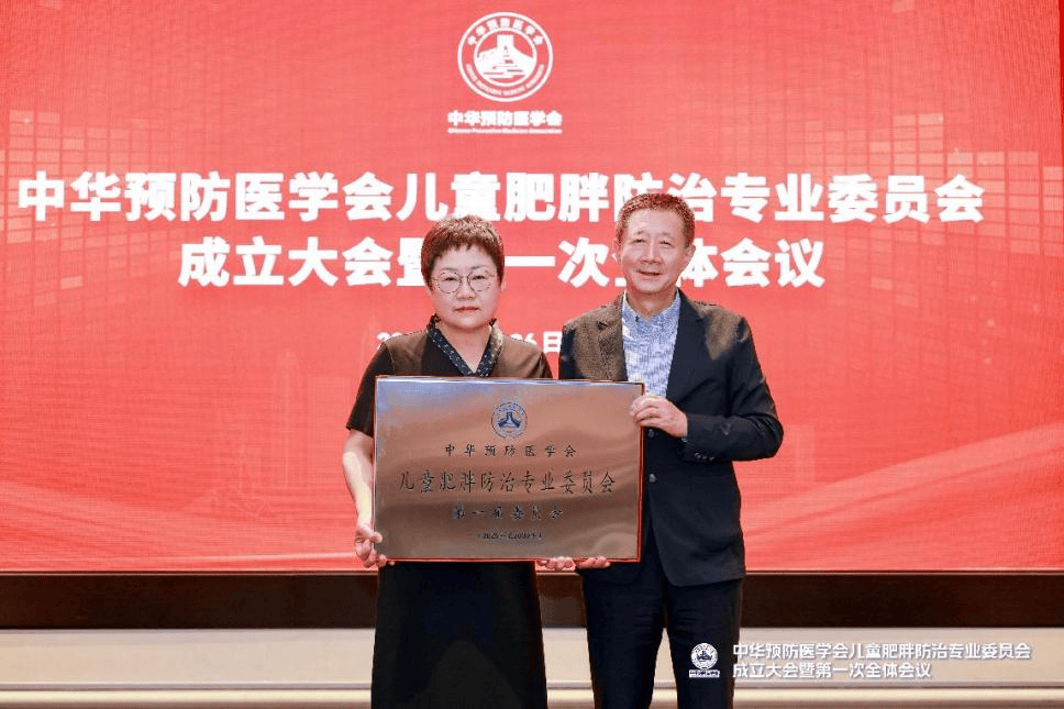 中华预防医学会副秘书长李全乐为米杰主委颁发儿童肥胖防治专业委员会牌匾