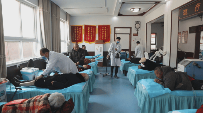 周口市沈丘县槐店镇卫生院中医理疗室内,几位村民正在接受针灸治疗。 图据周口市卫生健康委