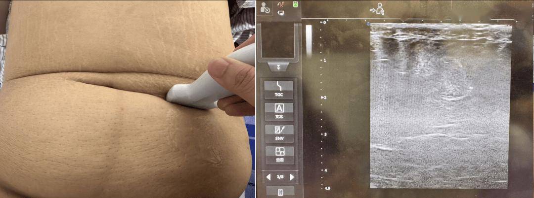 术前进行皮下脂肪厚度测量,腹直肌间隙测量