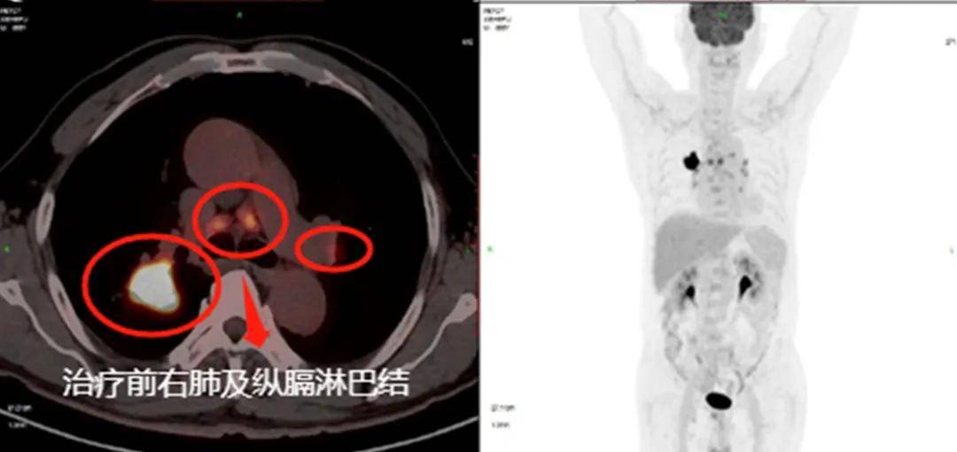 来到科室后,谢叔神情沉静,却掩不住眼底的焦虑。为了明确肿瘤的分期和扩散范围,医疗团队为他安排了全身PET-CT检查。报告出来后,连医生都忍不住皱了眉——右上肺的病灶约29×22毫米,双侧肺门、纵膈、右锁骨上区的淋巴结都有转移灶,左肾上腺和多处骨骼也发现了代谢活跃的病变。也就是说,癌细胞已经不只是“在肺里”,而是全身多发转移。
