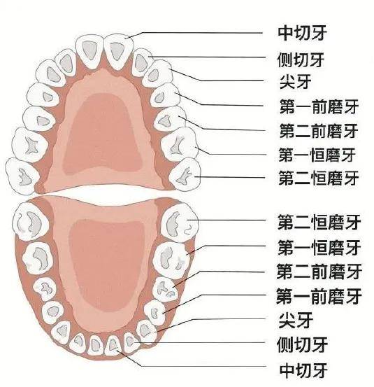 通常情况下,孩子的换牙期从6 岁左右开始,一直持续到12-13 岁,整个过程遵循“先下后上、先中间后两边”的规律,最早脱落的是下门牙,最后替换的多是口腔后方的尖牙和第二乳磨牙。