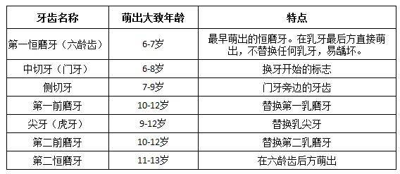 不过,每个孩子的发育节奏不同,家长可以参考下面的恒牙萌出时间表,但不用过分纠结早几天或晚几天,比平均时间早或晚半年到一年,一般都是正常的。但如果相差过大,如提早或推迟一年以上,则建议咨询口腔科医生。