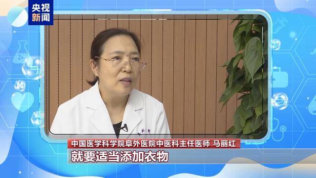 中国医学科学院阜外医院中医科主任医师马丽红:寒露之后,早晚我们会感到丝丝的寒意,这时候气温一般在15摄氏度以下,如果这种气温持续两周以上,我们就需要适当添加衣物。若气温骤降,我们还要及时添加衣物,以免引起疾病或者是诱发疾病。俗话说“寒从足起”是因为我们人体的足三阳经和足三阴经,它的经气在此交接,那么我们有一个重要的穴位,大家都知道叫三阴交,就在我们内踝上三寸,这个位置是一个非常关键的部位。
