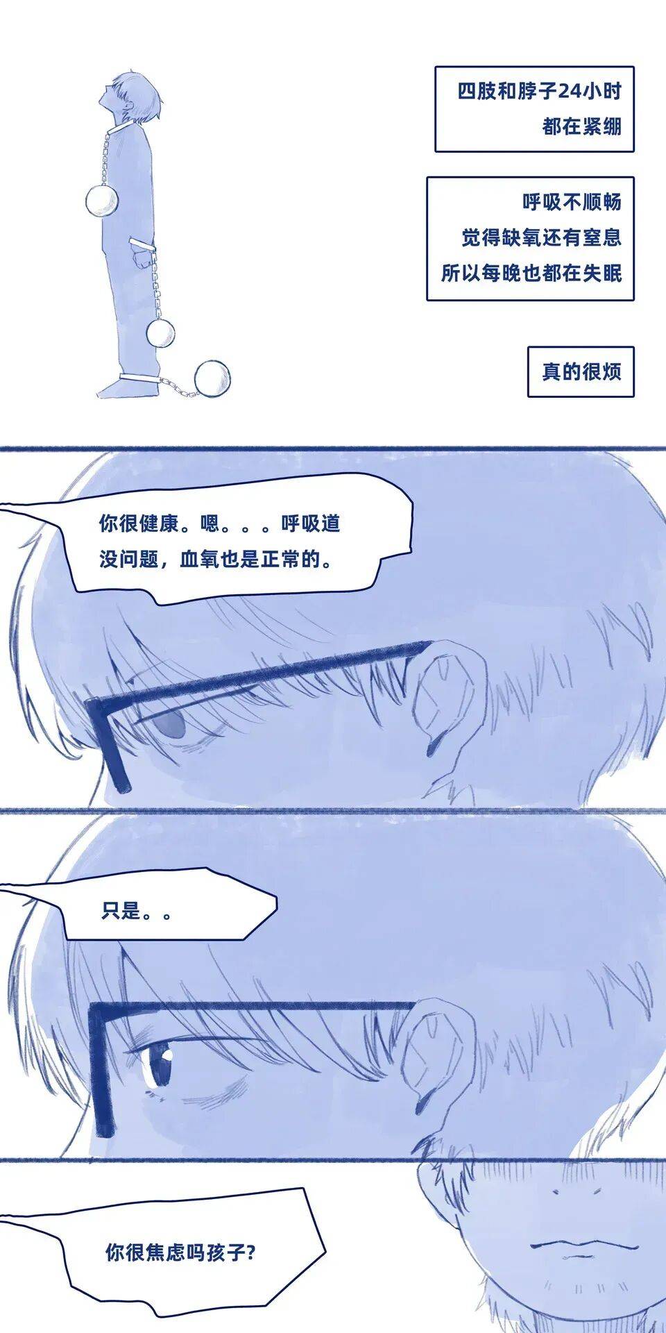 发现自己状态不对劲之后,我去看了心理医生,然后确诊了比较严重的焦虑症躯体化。睡觉的时候,我经常会呼吸不上来,把自己憋醒,而且只要走出我的房间,来到外面的环境,我就会有种不安全感。