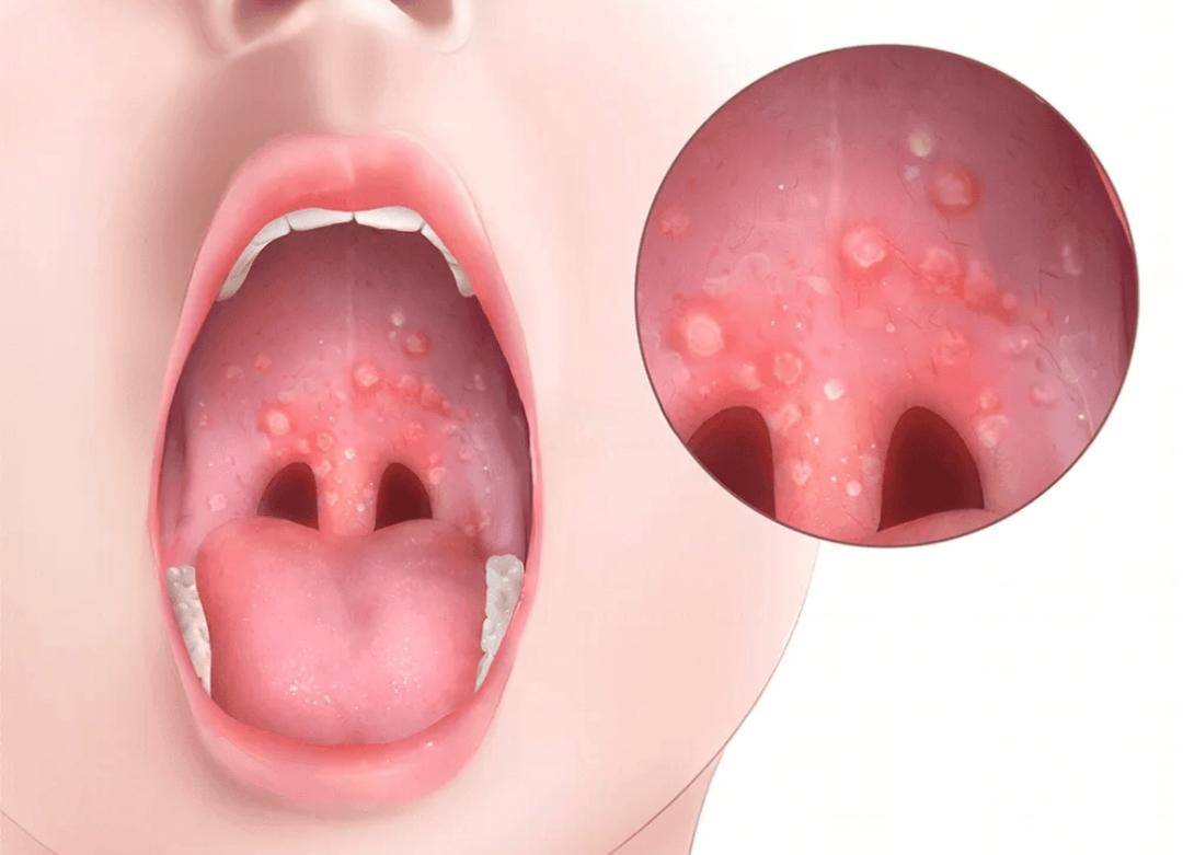 疱疹性咽峡炎则主要表现为咽峡部(包括软腭、悬雍垂、扁桃体等部位)出现疱疹或溃疡,同样好发于婴幼儿及学龄前儿童,患儿常因咽部疼痛出现拒食、流口水等情况,一般无手足部位皮疹,病程相对较短,多数患儿 1-2 周可自愈。