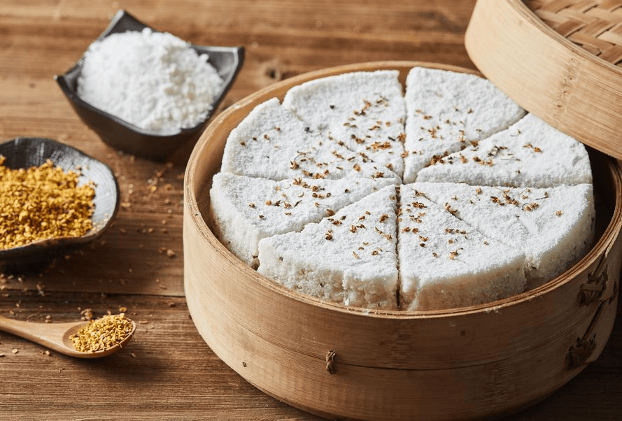 花糕是寒露和重阳节都少不了的糕点,用糯米粉、白糖和新鲜桂花做的 —— 揉面时要加够白糖,蒸的时候撒上一层桂花,蒸好后切成小块,每块都像小花朵,咬一口软乎乎的,满是桂花香,甜得刚好不齁嗓子。