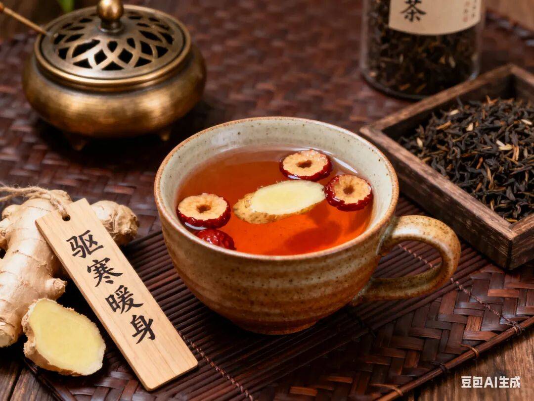 功效:生姜能温中止呕、解表散寒,红茶性温,能暖胃驱寒,此茶适合寒露时节手脚冰凉、畏寒怕冷的人群。