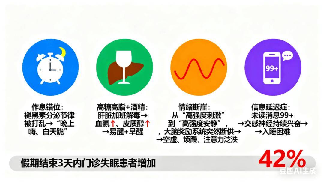 数据:假期结束3天内门诊失眠患者增加42%相当一部分合并焦虑或肝酶异常。