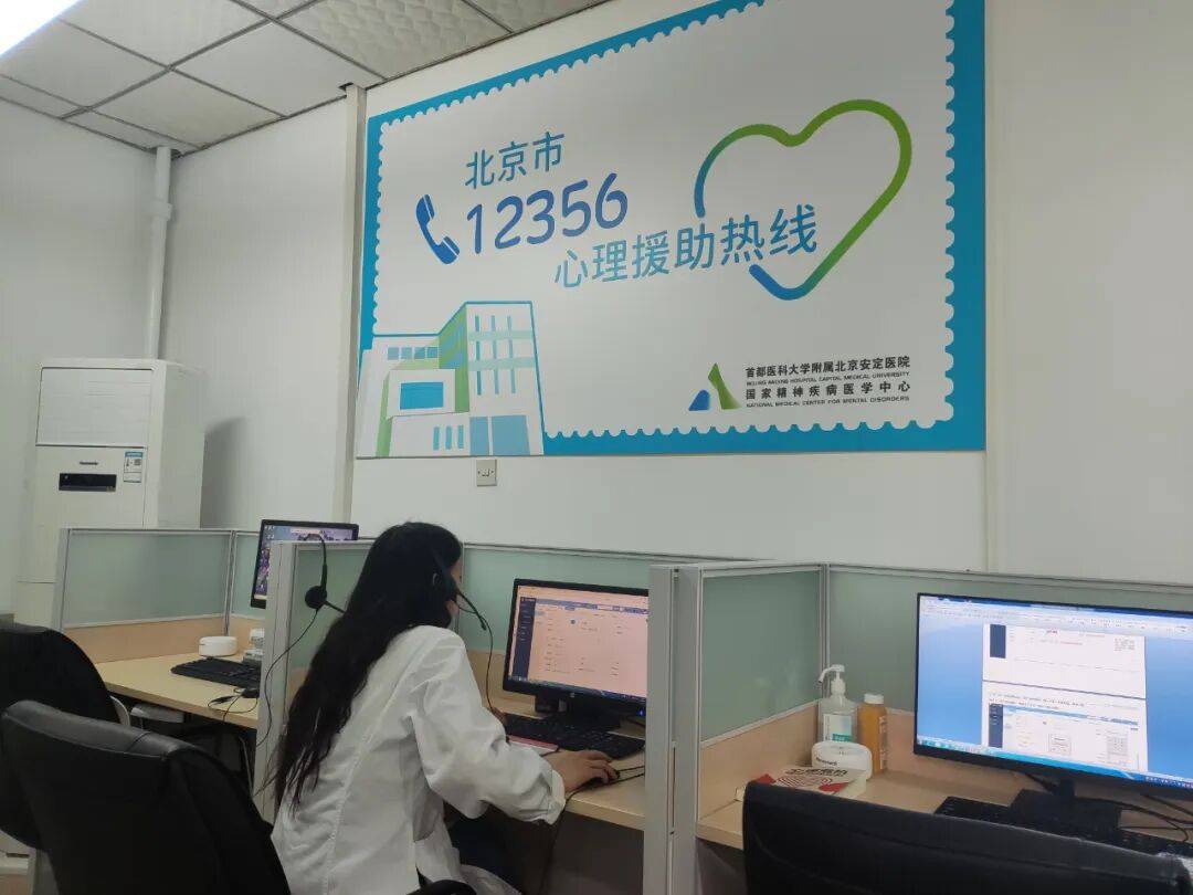 近日,首都医科大学附属北京安定医院接线员正在北京市“12356”心理援助热线办公室接听来电。首都医科大学附属北京安定医院供图