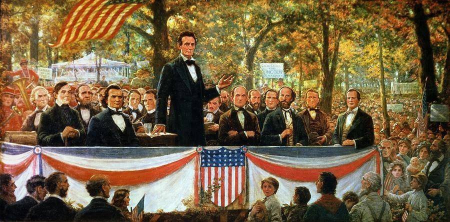 1854年,共和党正式成立,其核心目标是反对奴隶制的扩张。这个新党派很快吸收了大量反奴隶制力量,包括原辉格党成员、部分分裂出来的民主党人以及废奴主义者。1860年的总统大选中,共和党提出“不让奴隶制再扩展一步”的纲领,并承诺实行保护关税和“宅地法”,即为移民分配免费的土地。共和党的候选人是亚伯拉罕·林肯。