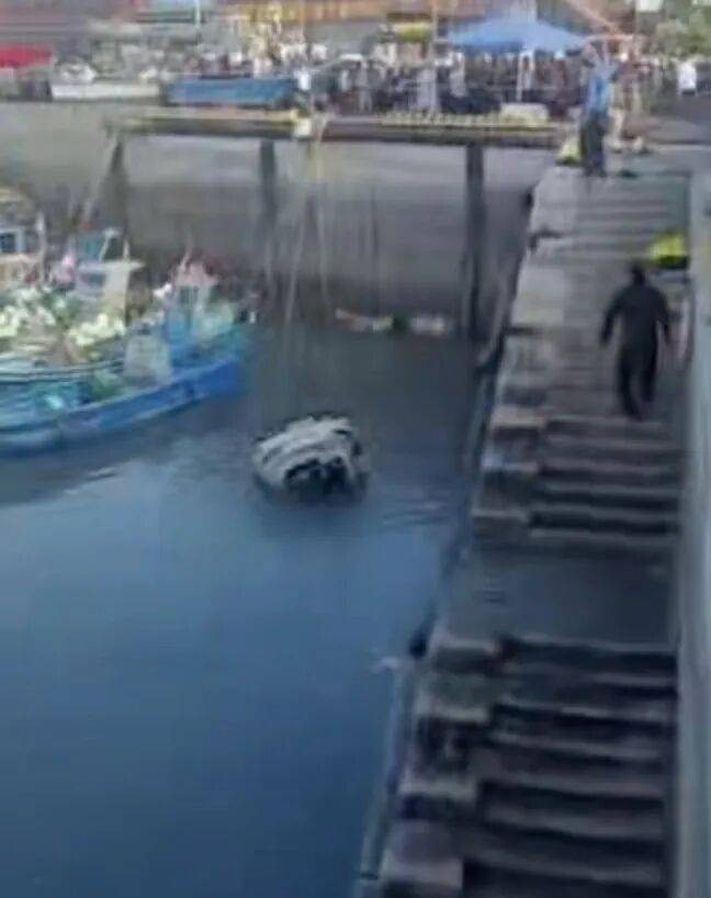 网传视频显示,事发时车辆以较慢速度行驶,靠近码头岸边时突然失控翻越路基坠海。据媒体报道,事发路段仅有30厘米高的路基石作为防护,夜间无照明和警示装置。驾驶员在车辆悬空时曾尝试刹车,但未能避免坠海。