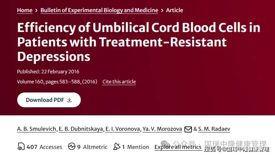 图7-- 发表在《实验生物学与医学通报》上的一项针对16位复发难治性抑郁症患者的研究显示,在接受干细胞治疗后,取得了积极