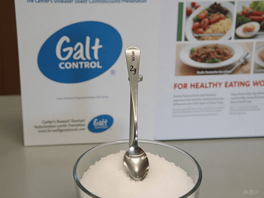 下图的勺子一平勺装2克盐,健康成年人每天最多有3勺盐的额度。如果食材含盐或用酱油、味精、鸡精调味,还要适当扣除额度。