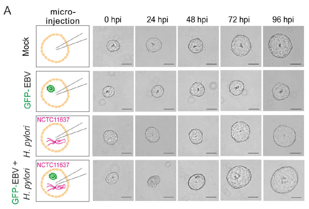 题目:幽门螺杆菌与Epstein-Barr病毒在胃类器官中共感染可增强细胞增殖和形态发生