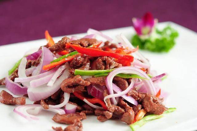 洋葱香芹牛肉丝(牛里脊肉40克、洋葱40克、香芹40克、黑胡椒2克)