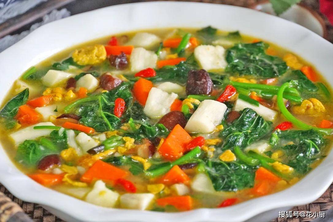 时间一到,关火。出锅之前,撒上一把小葱花,再抓上几颗枸杞,嘿,这一锅好喝的蔬菜汤就大功告成啦!