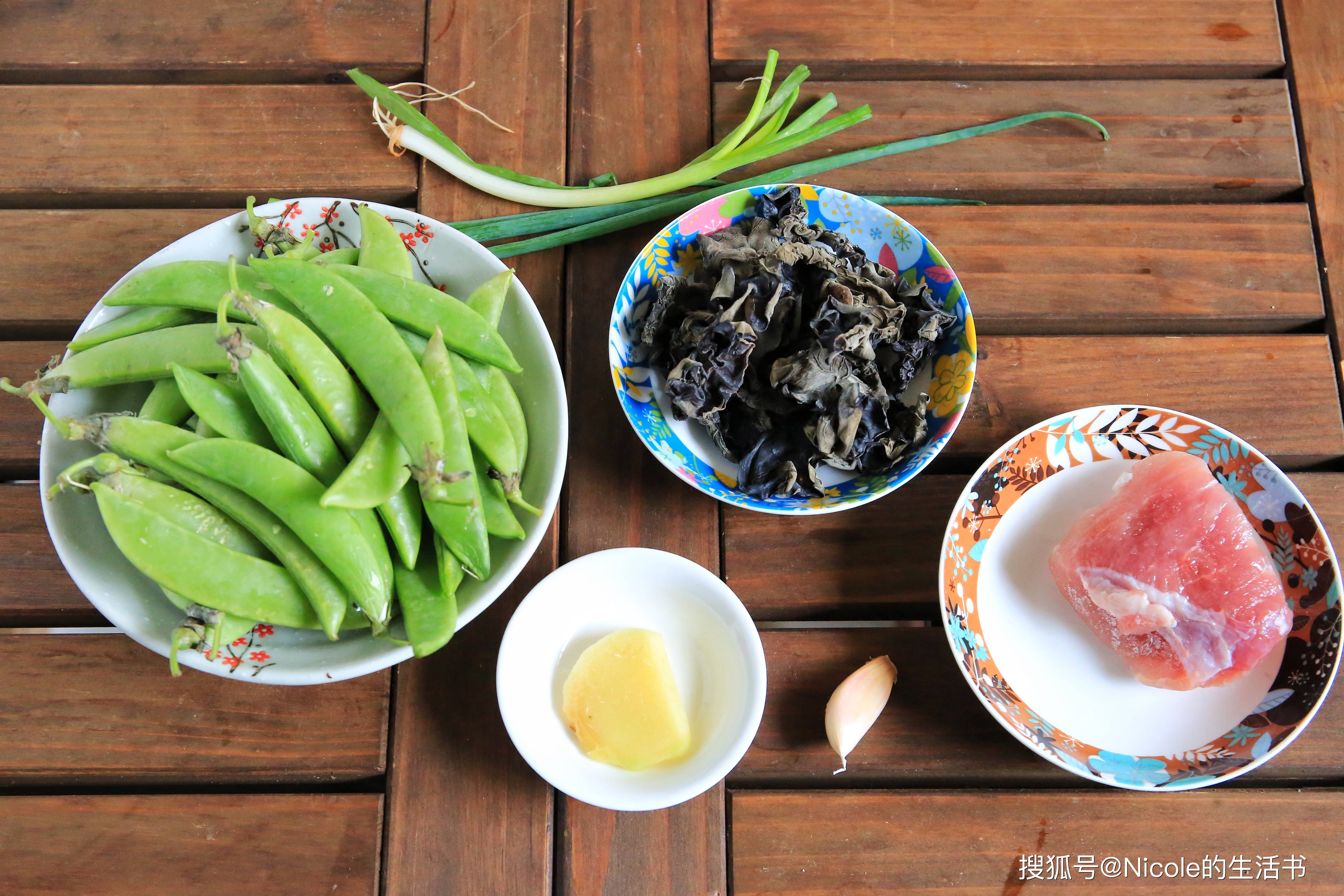 主料:木耳少许、甜豆荚少许、瘦肉1块